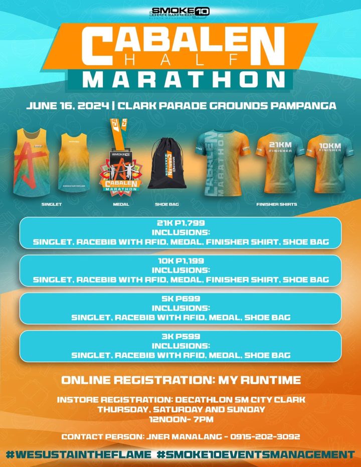 The Cabalen Half Marathon, hosted by Smoke10 Event Management, is set to captivate the local community on June 16, 2024, at the Clark Parade Grounds in Pampanga. This event is more than just a race; it is a celebration of the vibrant and indomitable spirit of the Cabalens. Offering distances of 3K, 5K, 10K, and 21K, the marathon welcomes runners of all levels—from seasoned athletes to recreational runners.