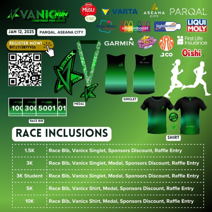 The Vanicx Run 2025: Together for Good is a meaningful fun run organized by the Immaculate Conception Academy (ICA) Vanicx Batch 2000. Taking place on January 12, 2025, at Parqal, Aseana, the event is part of their alumni homecoming celebrations and aims to bring together alumni, students, families, friends, and running enthusiasts.