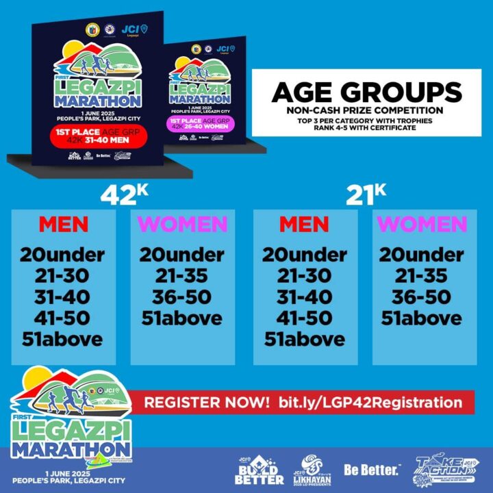 The First Legazpi Marathon is set to make history on June 1, 2025, at People’s Park, Legazpi City. Organized by JCI Legazpi in partnership with the City Government of Legazpi and Liga ng mga Barangay, this exciting race offers distances of 3K, 5K, 10K, 21K, and the full 42K marathon.