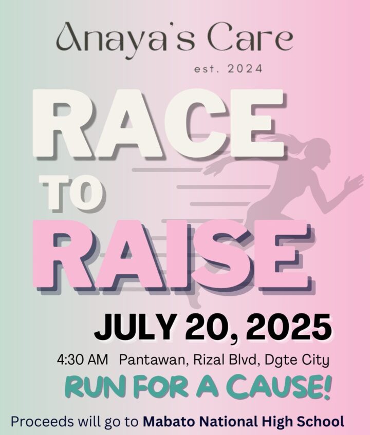 Race to Raise: Fun Run for a Cause is set to take place on July 20, 2025, in Dumaguete City, Negros Oriental. Organized by Anaya’s Care, this heart-driven event invites runners to lace up and run for a greater purpose — supporting feeding programs, educational initiatives, and children in need.