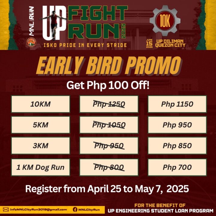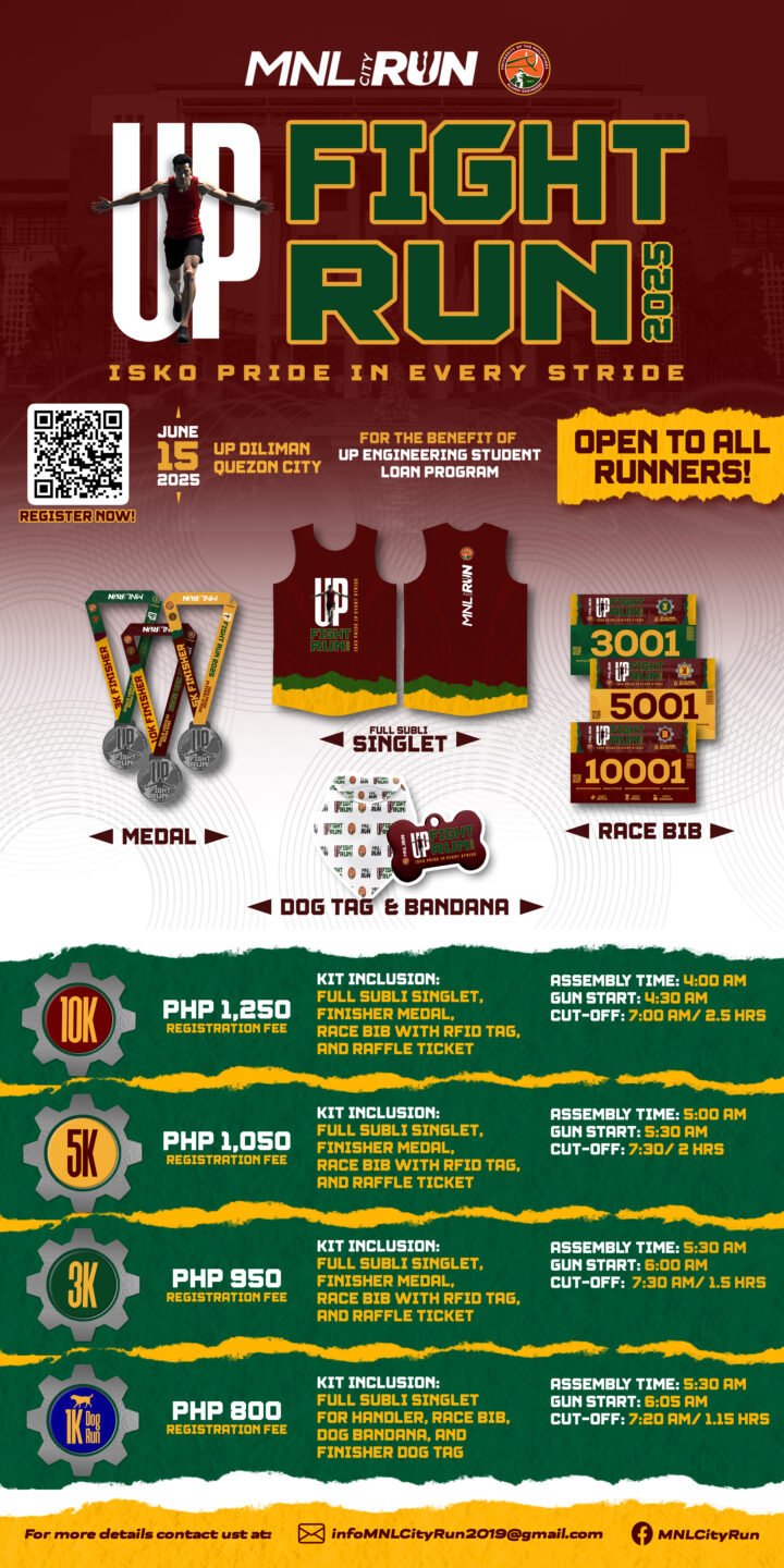 The UP FIGHT RUN 2025: Isko Pride in Every Stride brings together runners, alumni, and supporters of the University of the Philippines in a powerful celebration of unity and academic purpose. Organized by the UP Alumni Engineers (UPAE) in partnership with MNL City Run, this meaningful event takes place on June 15, 2025, at UP Diliman, Quezon City.