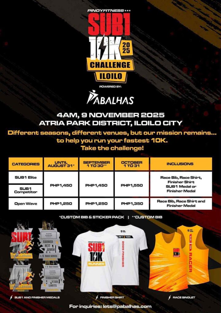 Get ready, Iloilo! The Pinoy Fitness SUB1 10K Challenge 2025 is coming to Iloilo City for the very first time in partnership with PABALHAS!