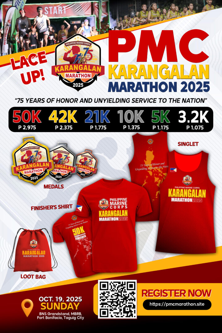 Organized in partnership with the Philippine Marine Corps Officers’ Spouses Association, Inc. (PMCOSAI) and the Philippine Marine Corps Foundation, Inc. (PMCFI), the event raises funds to support scholarships for Marine dependents, assist the children of wounded and fallen Marines, and aid troops stationed in remote areas. Runners may choose from distances ranging from 3.2KM to an ultramarathon 50KM, with proceeds directly contributing to this noble mission.