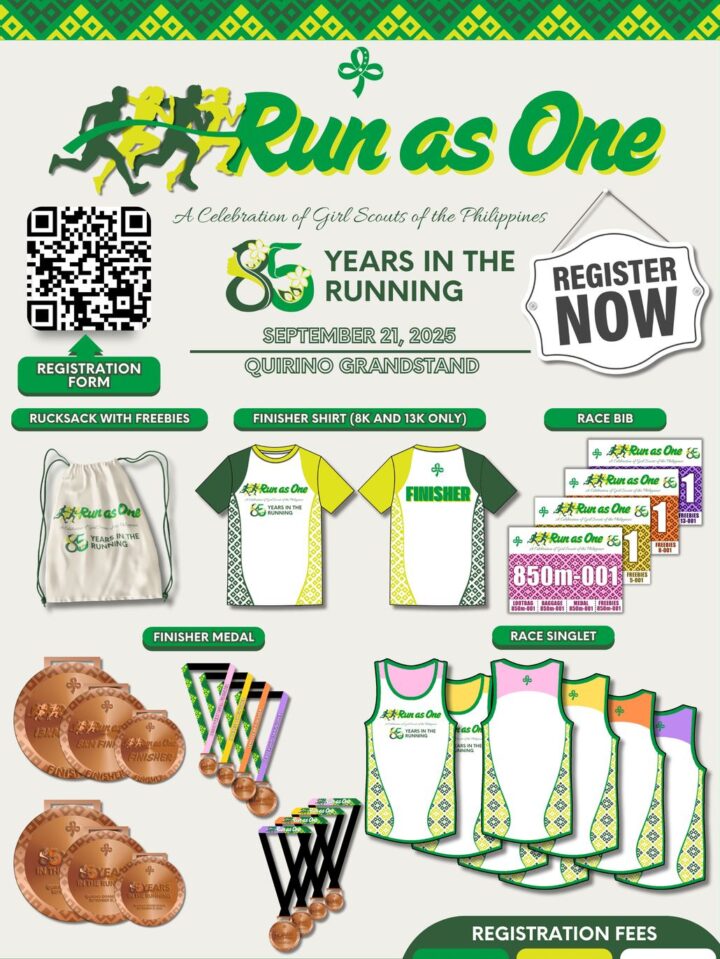 Run as ONE: A Celebration of GSP’s 85 Years in the Running is a commemorative fun run hosted by Rundezvous Events, happening on September 21, 2025, at Quirino Grandstand, Manila. Celebrating the 85th anniversary of the Girl Scouts of the Philippines, this milestone event invites Girl Scouts, their families, friends, and supporters to run in unity and stride toward a healthier, empowered future. With inclusive race categories from 850 meters to 13KM, participants will experience a meaningful blend of fitness, advocacy, and community spirit—honoring decades of courage, leadership, and service.