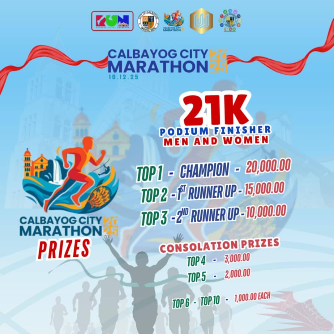 The 2nd Calbayog City Marathon 2025 is set to take place on October 12, 2025, in Calbayog City, Western Samar. Organized by Runners United of Calbayog, in partnership with the Local Government Unit of Calbayog City, the event is part of the city’s Charter Day celebration on October 16.