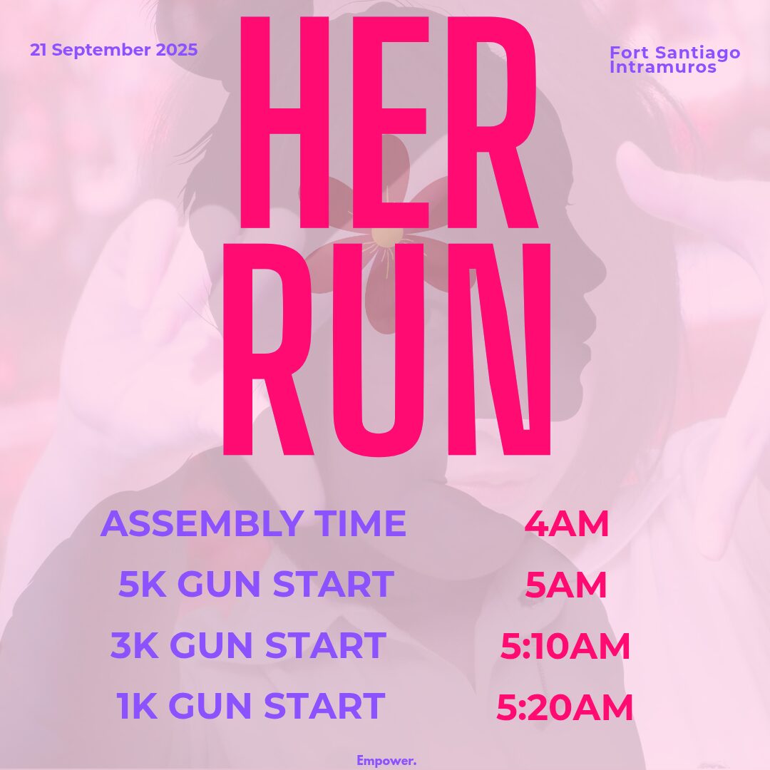 HER RUN: SHE RUNS THE WORLD is a fun and empowering run exclusively for women and girls of all ages, happening on September 21, 2025, at Fort Santiago, Intramuros. Organized by EmpowerPh, this unique event celebrates female strength, unity, and resilience.