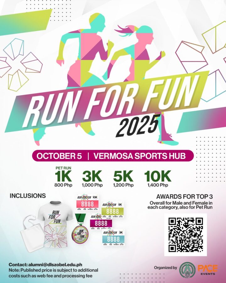 RUN FOR FUN 2025 is set to bring runners, families, and even furry friends together on October 5, 2025, at the Vermosa Sports Hub in Cavite. Organized by DLSZAA & PACE Events, this exciting race invites first-time runners, weekend joggers, and seasoned racers to join in a day of movement, fun, and community. With categories ranging from a 1K Dog Run to 10K, participants can look forward to an inclusive and joyful celebration of fitness. Each registration comes with an official race shirt, finisher medal, race bib, and loot bag—making every stride more rewarding.