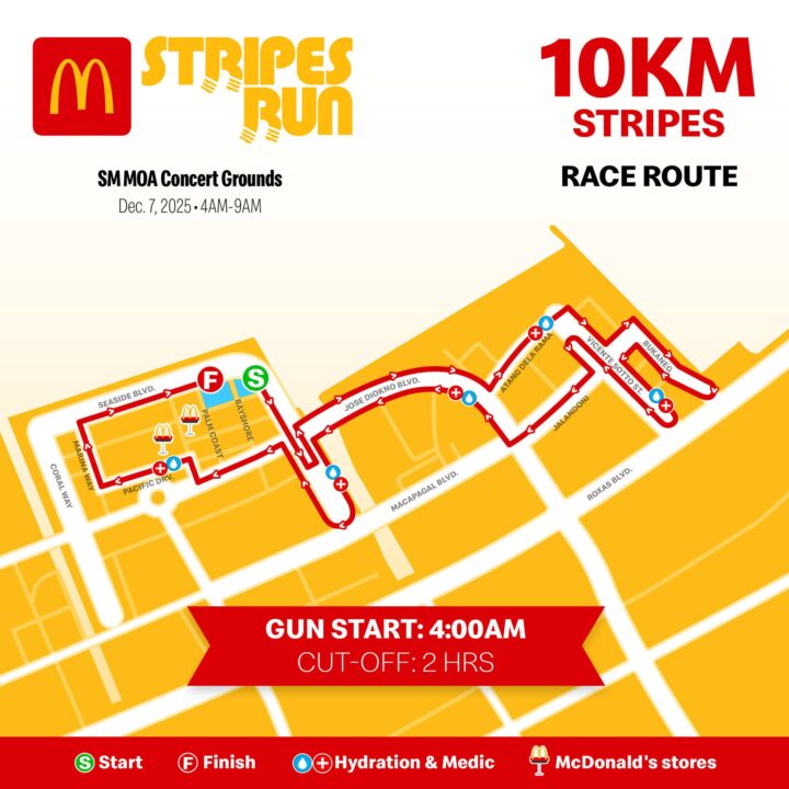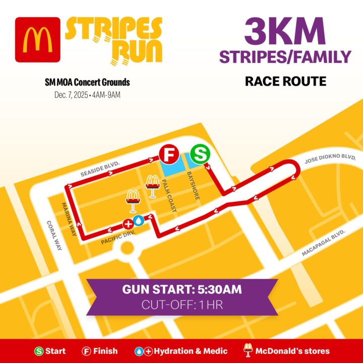 The McDonald’s Stripes Run 2025 is set to return on December 7, 2025, at the SM Mall of Asia Concert Grounds. This vibrant fun run brings together families, friends, and running enthusiasts of all levels under one roof of stripes, smiles, and purpose. As with past editions, Stripes Run is more than just a race — it champions a cause, supporting the Ronald McDonald House Charities (RMHC) and its “Read to Learn” program to advance literacy and educational access in the Philippines.