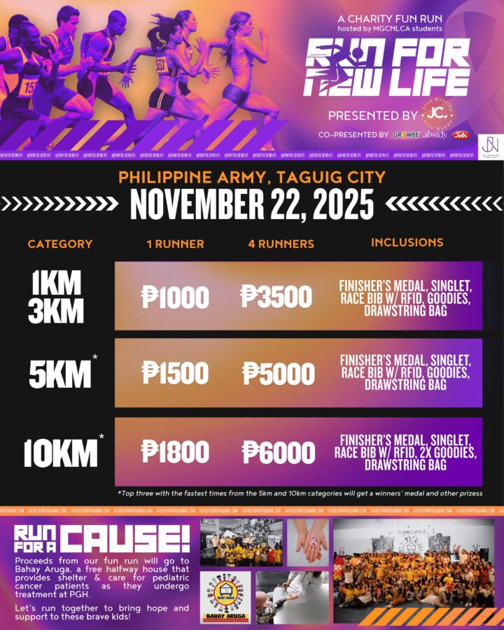 The Run for New Life 2025 is set to take place on November 22, 2025, at the Philippine Army Grandstand in Taguig City. Organized by SOLE PURPOSE x JN Enterprises and spearheaded by the students of MGC New Life Christian Academy, this event brings together runners, families, and supporters for a meaningful cause – raising awareness and funds for Bahay Aruga, a free halfway home for pediatric cancer patients.