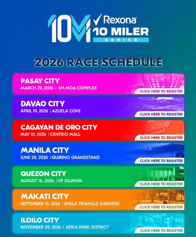 The Rexona 10 Miler Series is back in 2026, bringing high-energy runs to seven iconic cities across Metro Manila, Visayas, and Mindanao.