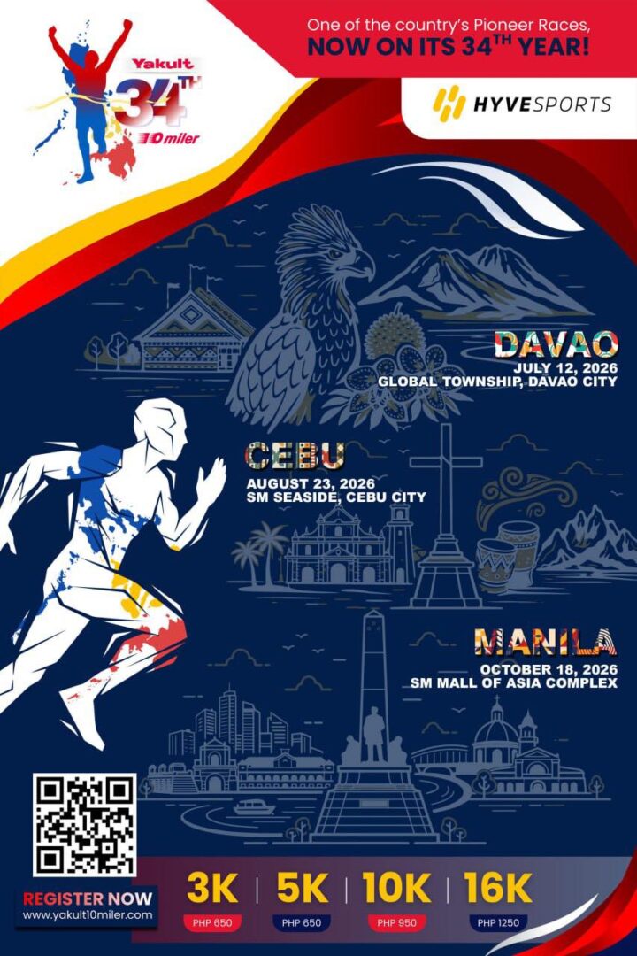 In 2026, the Yakult 10-Miler doesn’t just celebrate another year — it celebrates the whole country. Lace up. Choose your city. And run a piece of Philippine running history. 🏅