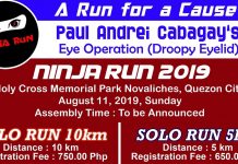 NINJA RUN 2019 is set to happen on August 11, 2019 starting at the Holy Cross, Novaliches, Quezon City. The race is to benefit, A Run For A Cause: Paul Andrei Cabagay's Eye Operation.