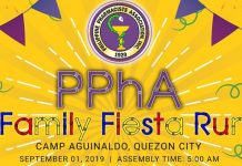 PPhA Family Fiesta Run is a noncompetitive walk/run with a Filipino fiesta theme to kick off celebration of the Philippine Pharmacists Association's centennial anniversary.