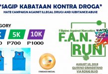 The People’s Volunteer Against Illegal Drugs (PVAID) in partnership with the PDEA, MMDA,DILG and PNP NCR Police Office will hold a Fun Run this August 10, 2019 4PM Saturday at the Quirino Grandstand via Roxas Blvd.