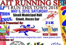 Sinait Running Series 2 with the theme “I RUN THIS TOWN” will be held on May 5, 2018, at Sinait, Ilocos Sur.