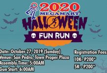 2020 Megamart first halloween fun run is happening on October 27,2019. Run wearing your favorite Halloween costumes.
