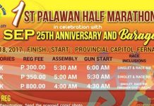 Half Marathon running event to coincide with Palawan 2017 Baragatan Festival and 25th SEP Anniversary Celebration. 1st Palawan Half Marathon is on June 18, 2017 @ 4am to 8am @ Palawan Provincial Capitol
