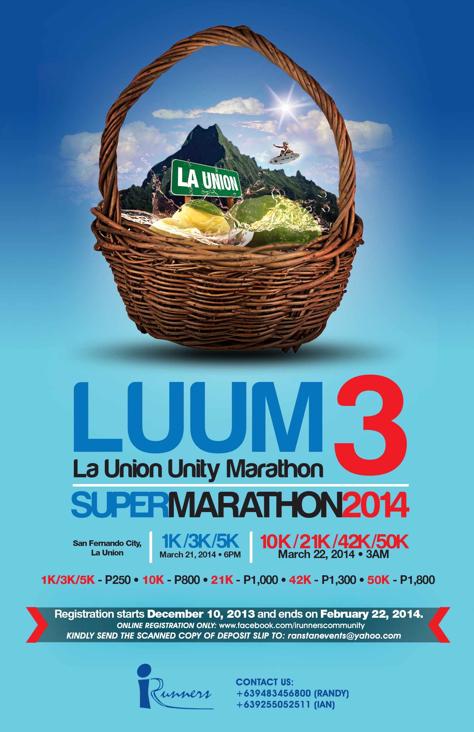 On its third year, IRUNNERS, the Creator and Organizer of the most awaited Super Event of 2014, the La Union Unity Marathon or LUUM promises 3 times the passion, 3 times the route difficulty and hardship and 3 times jaw-dropping scenery