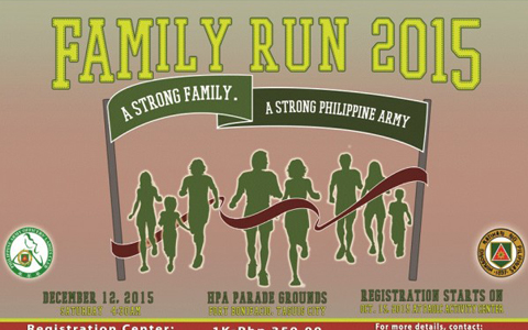 The Philippine Army Officers’ Ladies Club will be hosting the 2nd Family Run 2015. This will be held on December 12 at the Phil Army Grandstand, Taguig City.
