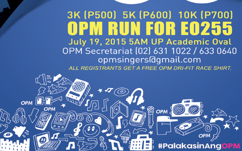 The Organisasyon ng Pilipinong Mang–aawit (opm.org.ph), the country’s leading non-profit org of Professional Singers will be conducting "OPM Run For EO255".