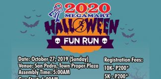 2020 Megamart first halloween fun run is happening on October 27,2019. Run wearing your favorite Halloween costumes.