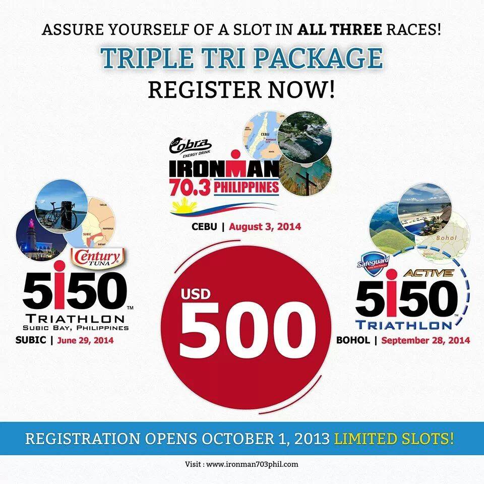 The dates for Cobra Ironman 70.3 Philippines, Century Tuna and Safeguard 5150 Philippines 2014 has already been revealed, and the 2014 Sunrise Events is introducing a TRI-Package for athletes who are interested to join all of mentioned events!