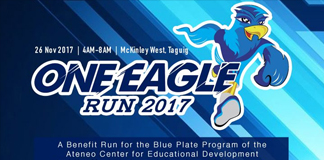 One Eagle Run is a benefit run that aims to bring together the community, have fun through running and at the same time, give back to the community. 100% of the proceeds of this event will go to Blue Plate Program of Ateneo Center for Educational Development and Marawi victims through Synergeia.