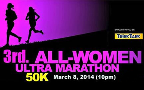 All Women UltraMarathon (AWUM) 2014 is happening on March 8, 2014 at Cebu City. This event is organize by a group "Think-Tank" in Cebu. Check it out!