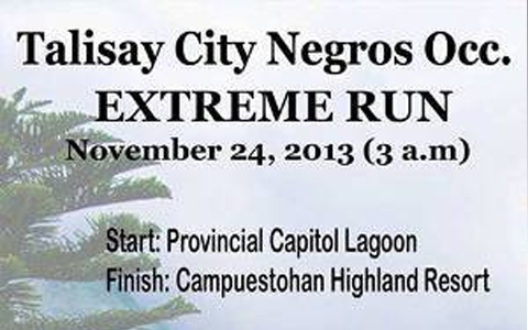Check out the Talisay City Negros Occidental Extreme Run 2013 happening on November 24 at Negros Occidental Lagoon, Bacolod City.