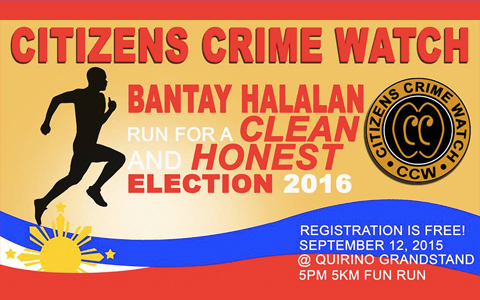 CITIZENS CRIME WATCH BANTAY HALALAN is a Fun Run for a clean and honest election in 2016.