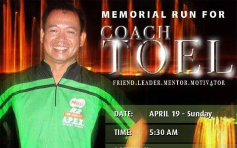 Everyone one is invited to support the 3KM MEMORIAL RUN for Coach Toel this coming Sunday, April 19, at SM MOA by Vikings area at 6AM. It's FREE and everyone is asked to participate in your team Uniform.