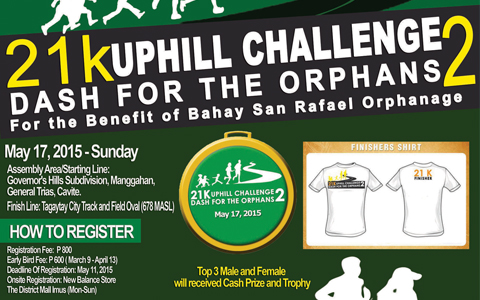 Dash For The Orphans 21K Uphill Challenge Year 2 is happening on May 17, 2015. The race will start at Governor's Hills Subdivision, General Trias, Cavite.