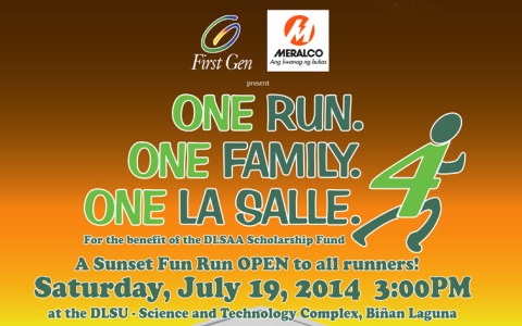 A sunset run for the benefit of the DLSAA Scholarship Fund happening on July 19, 2014 @ 3PM at the DLSU - Science and Technology Complex, Binan Laguna. Details here
