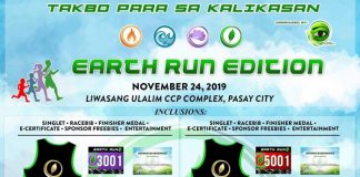 Earth Run 2019 is set on November 24 (Sunday) to be held at CCP Complex, Pasay City.