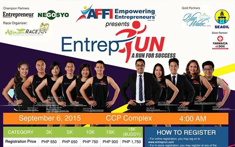 AFFI will be holding a running event that will gather thousands of businessmen to run and promote entrepreneurship. EntrepRun is happening on September 6, 2015.