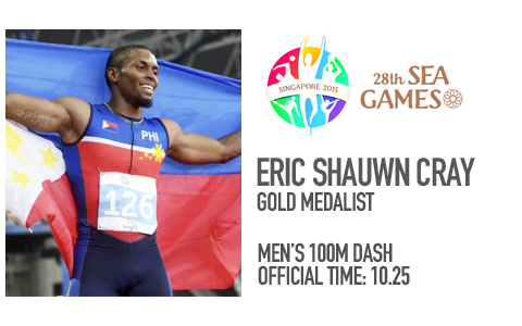 26 Year old Eric Shauwn Cray won the 100m Dash at the 2015 SEA Games in Singapore becoming the first Filipino to win in this competition since 1975.