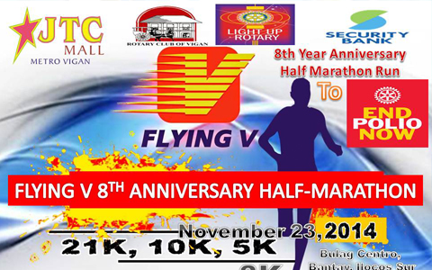 In celebration of their 8th Anniversary, Flying V will be holding a fun run for the benefit of Rotary International through Rotary Club of Vigan's End Polio Now fund.