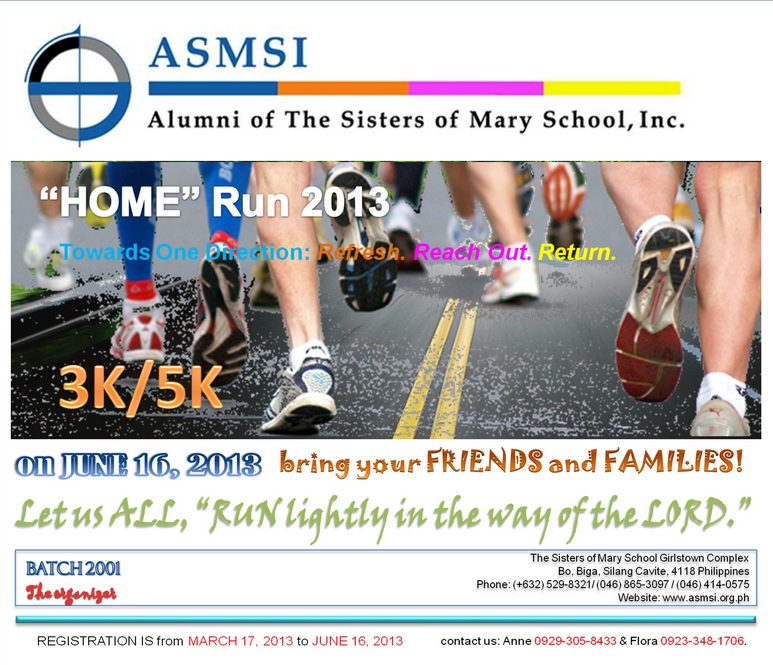 On June 16, 2013 (Sunday) the Batch 2001 is organizing another ASMSI Fun Run, as part of the celebration of the 1st ASMSI International Convention.