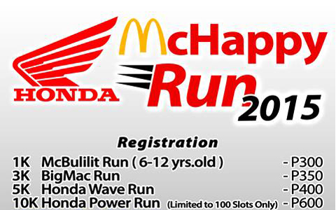 Honda McHappy Run, organized by the Surigao Runner Club, is happening on February 22, 2015 at McDonald's Surigao City.