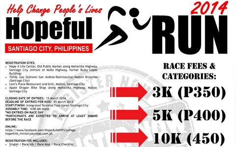 Help change people's lives! Join Hopeful Run 2014 at Santiago City Isabela on March 22, 2014!