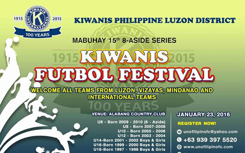 Kiwanis Football Cup is an event organized by the Mabuhay Football League, happening on January 23, 2016 at the Alabang Country Club.