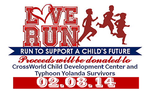 This February 8, 2014, Love Run is happening at Aseana City. Let the Love begin as we finish the race as we support the CrossWorld Child Development Center and Typhoon Yolanda Survivors.