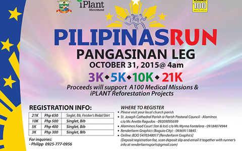 Pilipinas Run Pangasinan Leg is a fundraising event that aims to support A100 Medical Missions & iPLANT Reforestation Projects.