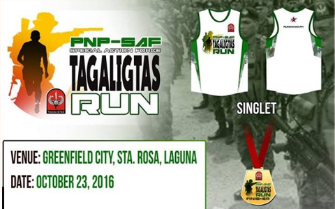 Run Mania Philippines Promotions Co. in partnership with PNP-Special Action Force will be conducting "The PNP-SAF Tagaligtas Run 2016" happening on October 23 in Sta. Rosa Laguna.