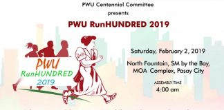 The Philippine Women’s University is turning 100 in 2019. Among the many celebrations planned is a fun run labeled “RunHundred” on Saturday, February 2, 2019 in the SM by the Bay