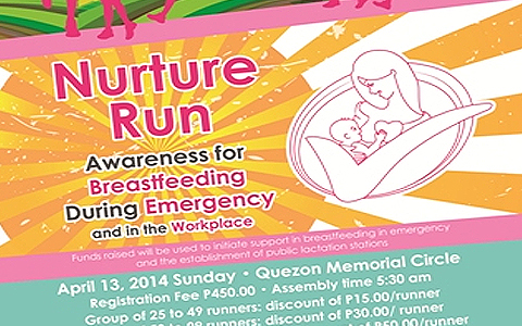 Nurture Run is happening this April 13, 2014 at the Memorial Circle, Quezon City. A run that aims to support breastfeeding in disaster-stricken areas and in establishing public lactation stations in the workplace