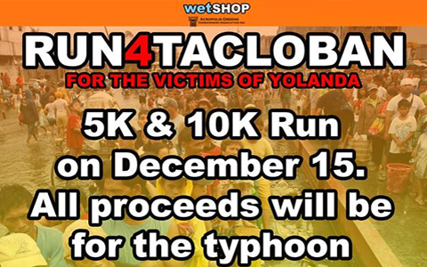 WetSHOP Events is inviting everyone to join Run 4 Tacloban happening on January 12, 2014 at Acropolis Clubhouse Q.C. All registration proceeds will be sent to the victims of Yolanda at Tacloban. Save the date!
