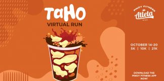 Tahooo! Tahooo! Bili na kayo ng Tahooo! Pledge to run a 5K, 10K or 21K between October 14 to 20 to earn the PF Atleta I Love Taho Virtual Badge.