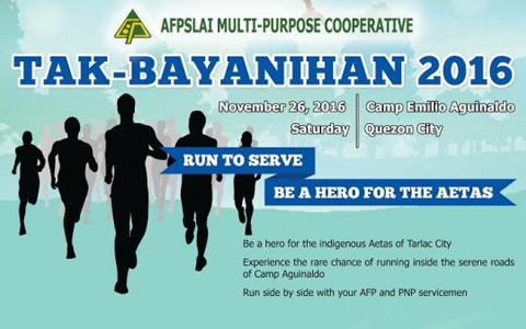 In line with the 30th year anniversary celebration, the AFPSLAI Multi-Purpose Cooperative (AMPC) launches its first ever fun run event dubbed as “TAK-BAYANIHAN 2016: RUN TO SERVE, BE HERO FOR THE AETAS”
