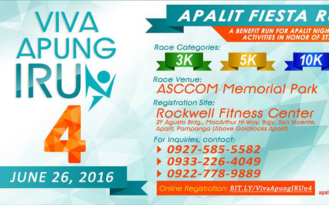 Viva Apung IRUn 4 is happening on June 26, 2016 in Sampaloc, Apalit, Pampanga.